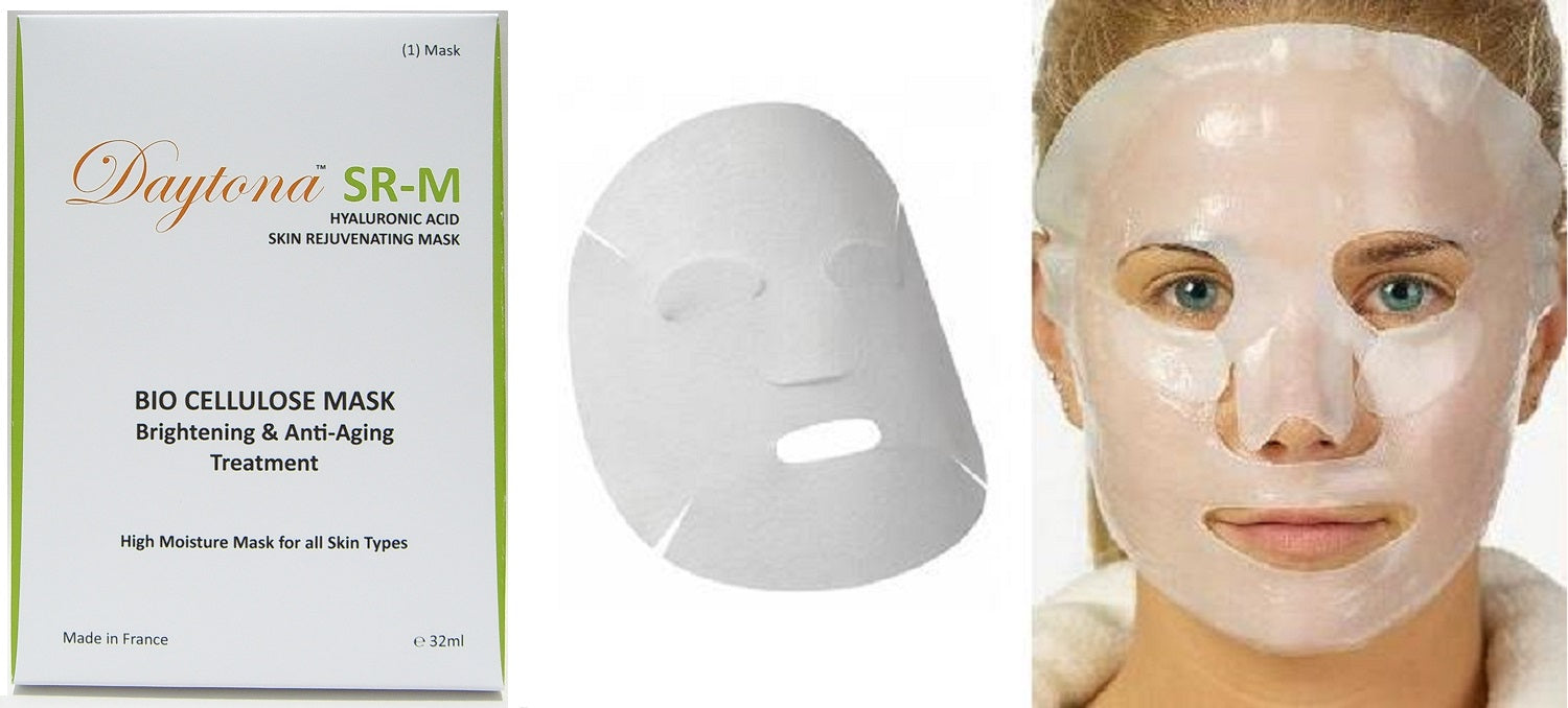 Daytona SR-M is a bio-cellulose mask that has been saturated with a sterilized biological cocktail serum of skin brightening and skin rejuvenating ingredients. The mask itself is made from the smallest natural organic fibers. It is soft but tough, and allows air and moisture to go through, yet conforms closely to the texture of the skin for maximum absorption of essential nutrients.